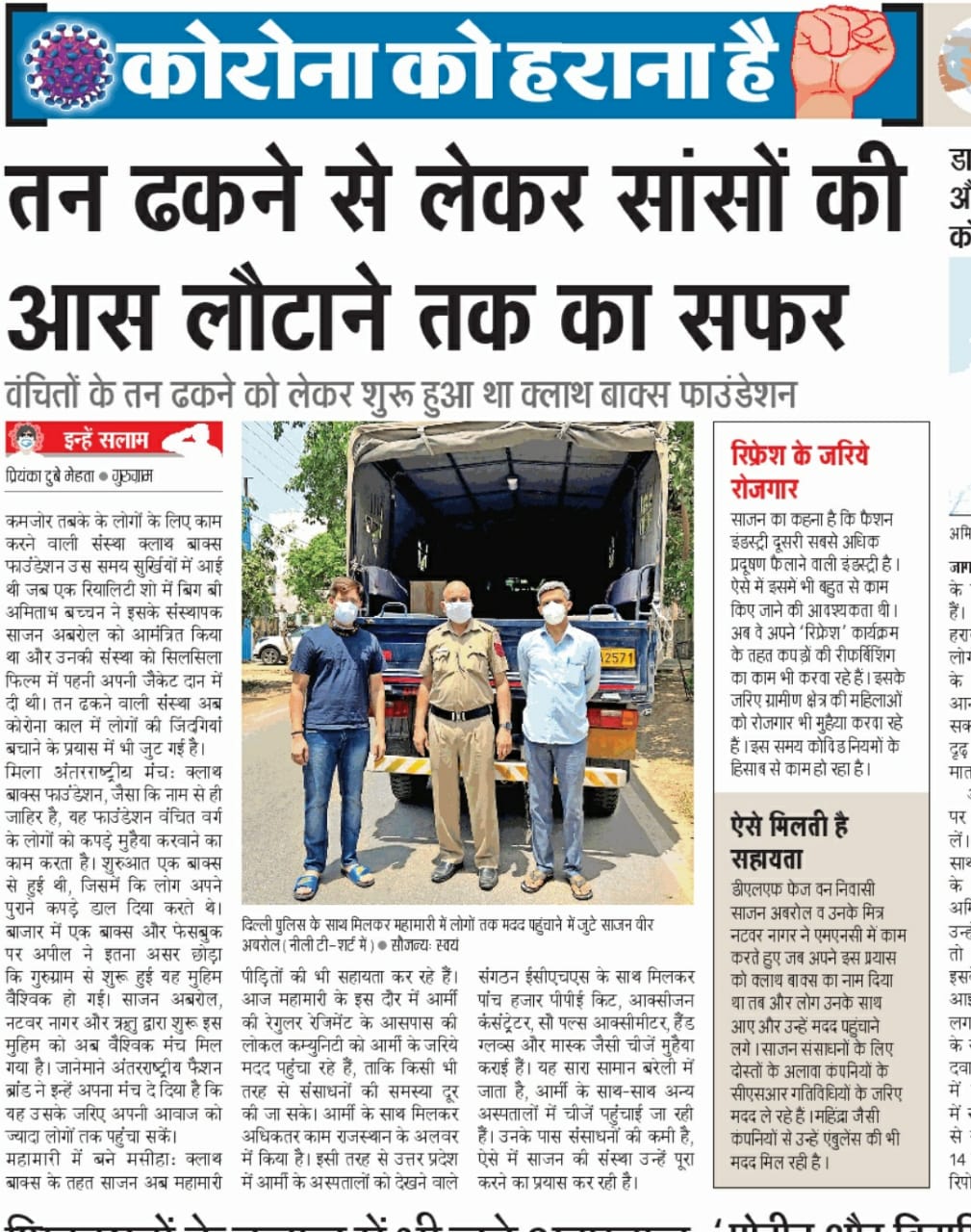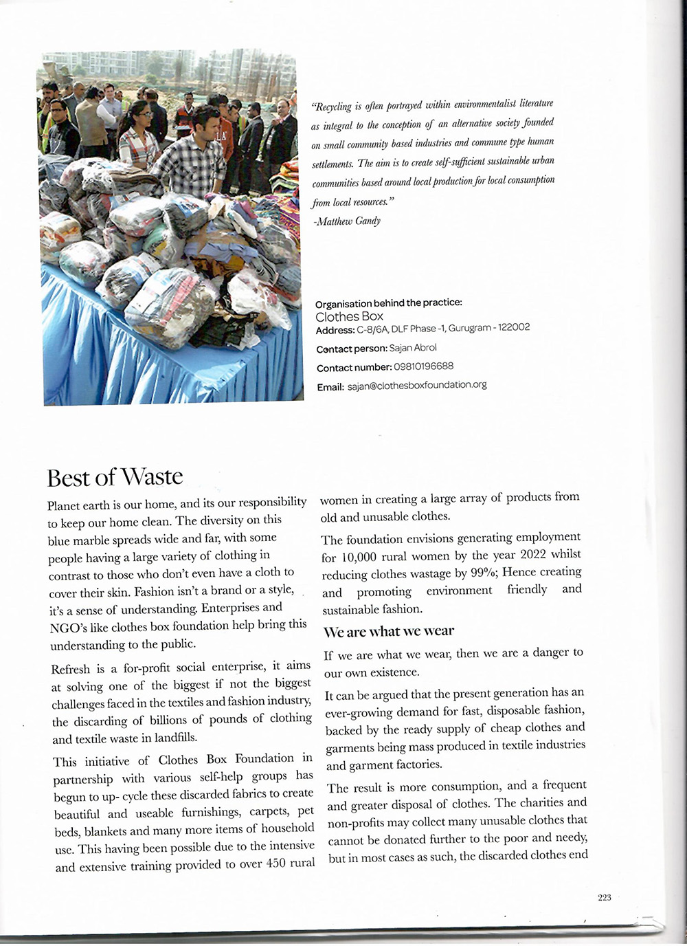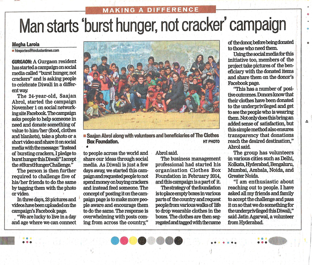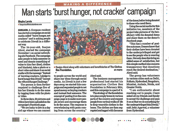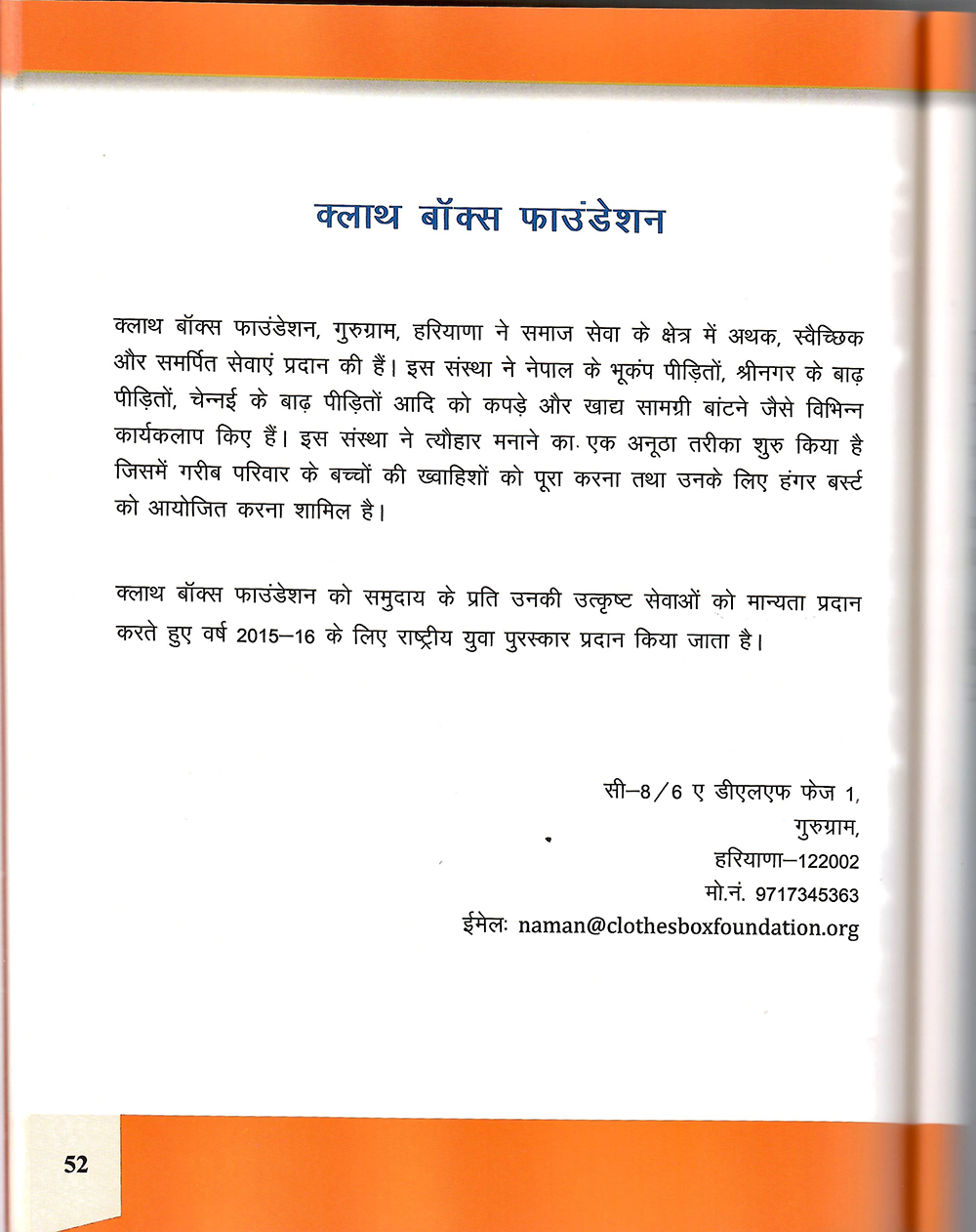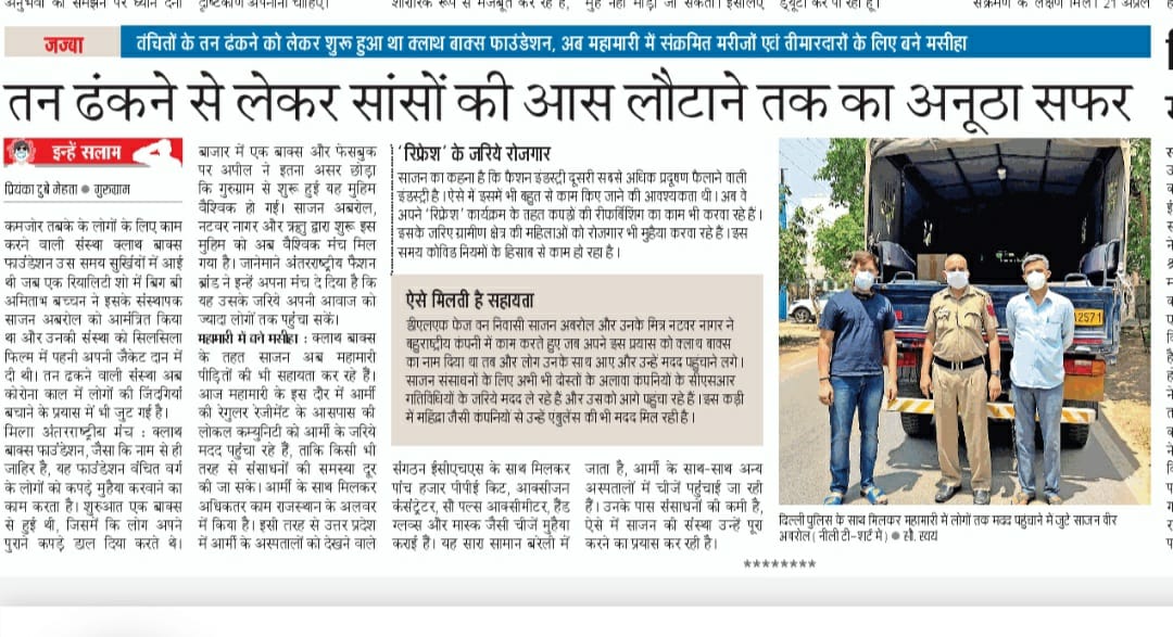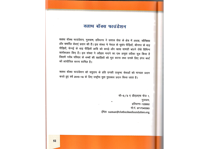 The Govt of India presented national award for outstanding social service to Clothes Box Foundation